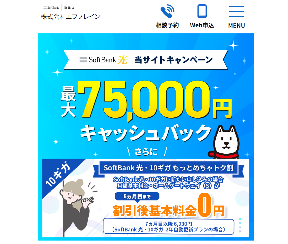 SoftBank å ã®ãããããä¹ãæããã£ã³ããŒã³ããªããçŸåšãå¥çŽäžã®ä»ç€Ÿã€ã³ã¿ãŒããããµãŒãã¹ã«ãããéçŽéãæ€å»å·¥äºè²»ãæå€§100,000åãŸã§æºé¡éå ããŠãããŸãã